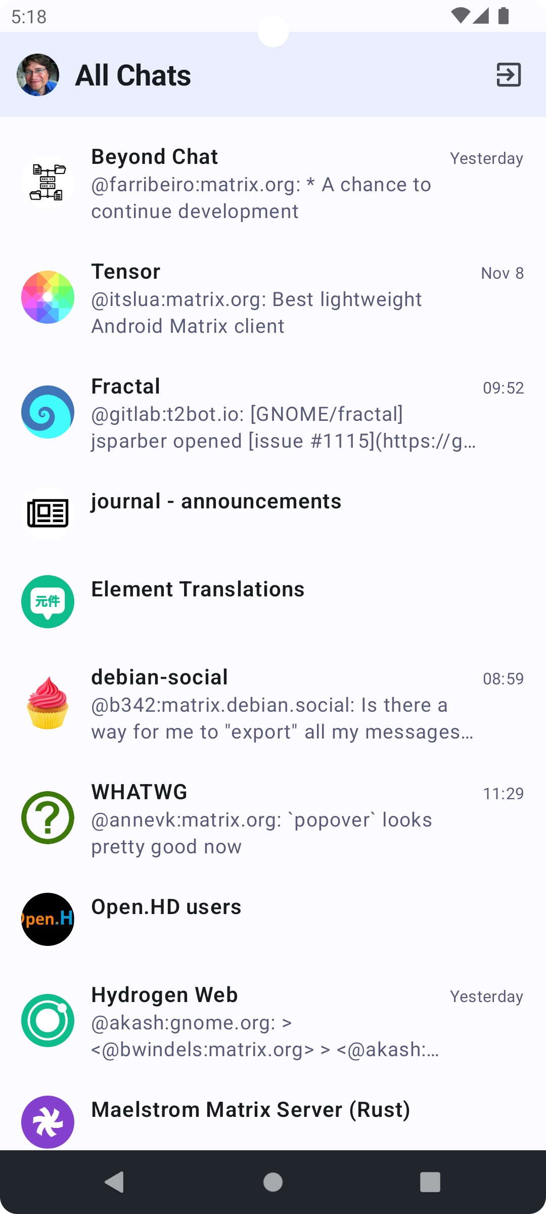 On the app itself, we have spent a lot of time on getting the chat right. The appโs core was upgraded to matrix-sdk 0.6+ to get the latest timeline API in, which required quite some refactoring. But allowed us to implement reactions, edits and replies. Encrypted Messages are still somewhat unreliable though. Prior to the nightly builds weโve also taken some time to clean up the UI to give it a more polished look and make clear which things are simply not enabled yet. On the non-chat side of things, weโve mostly worked on UI things (check out the ToDo-Sections and Pins), while we were waiting for the synapse fix on reading the timeline from the beginning, which is now released in 1.73. Happy to get back to implementing the state machines soon.