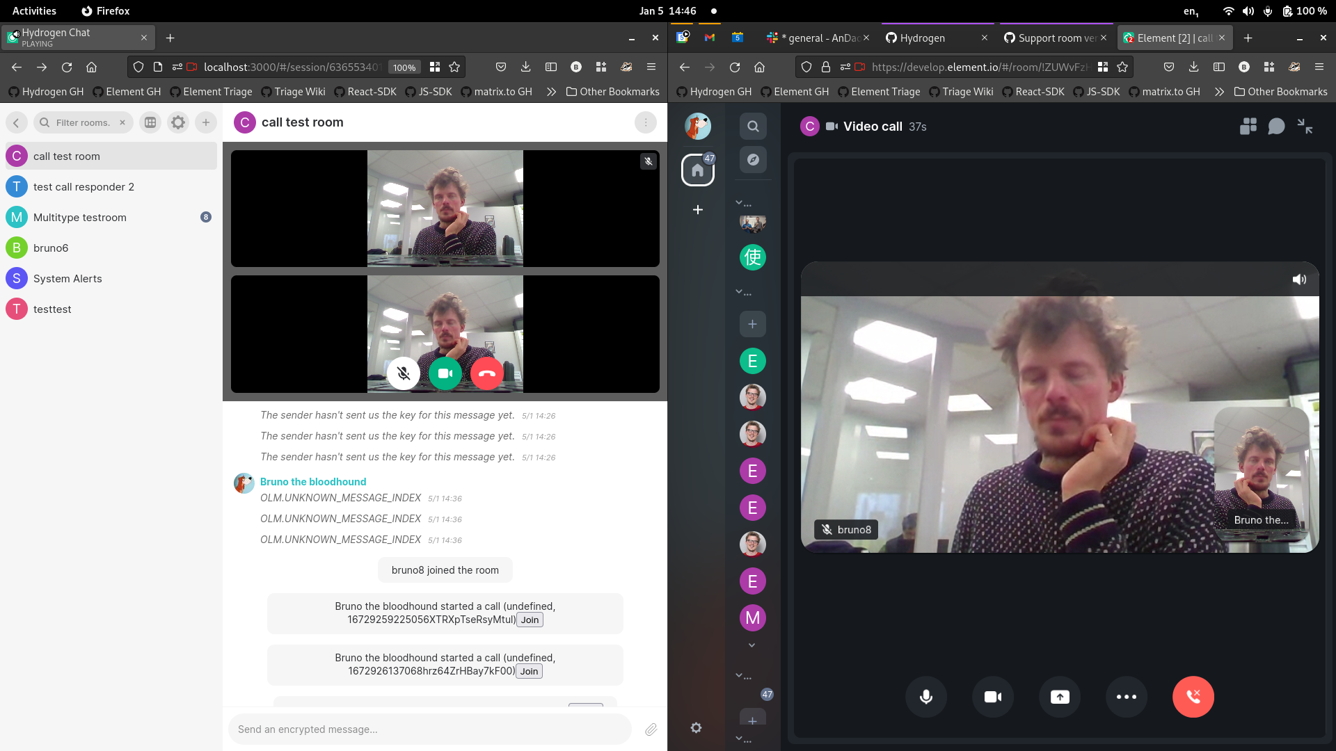 We started working on group call support again this week! Here's a little preview of a call between Element Call and Hydrogen on desktop and Android, hoping we can release it soon.